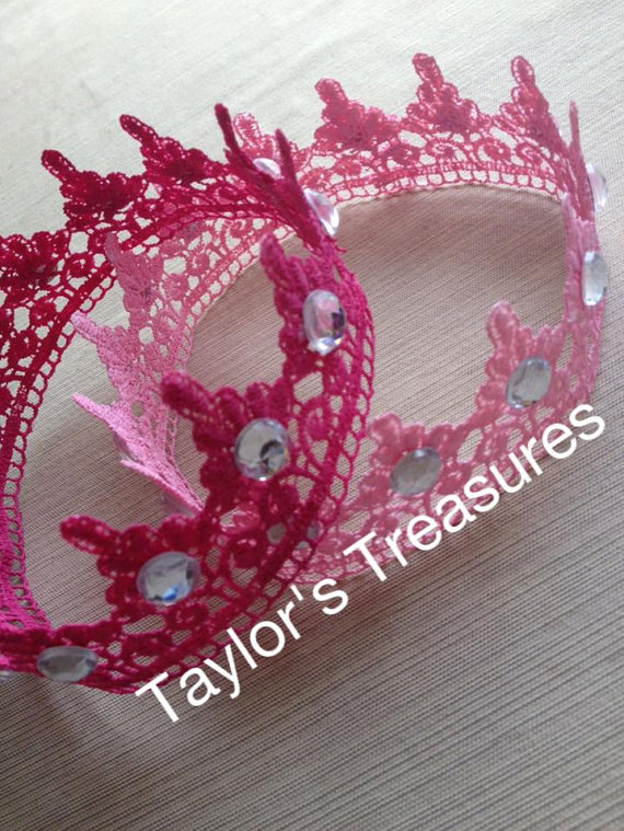 Taylors Treasures - Pink - Hot Pink Lace Princess Crown W/ Rhinestones - We Can Make This Crown In Any Color - Perfect For A Photo Prop