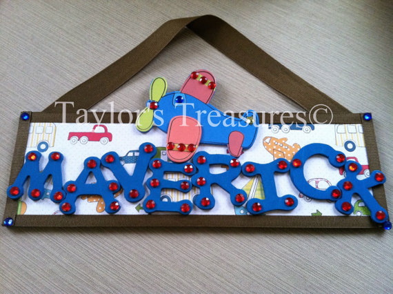 Taylors Treasures - Boys Nursery Plaque - Personalized With Any Color/Any Name/Any Theme